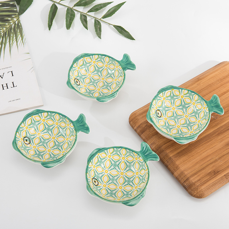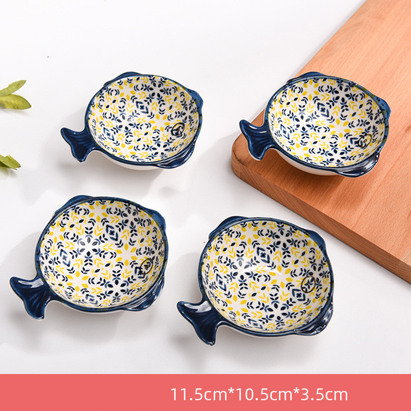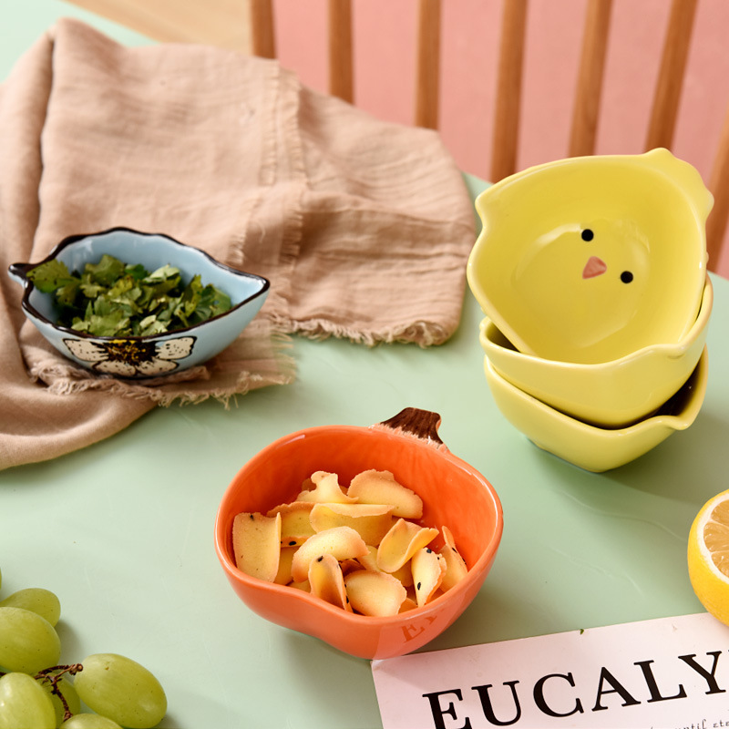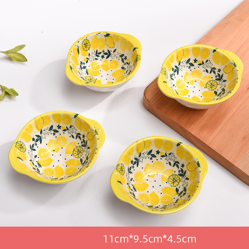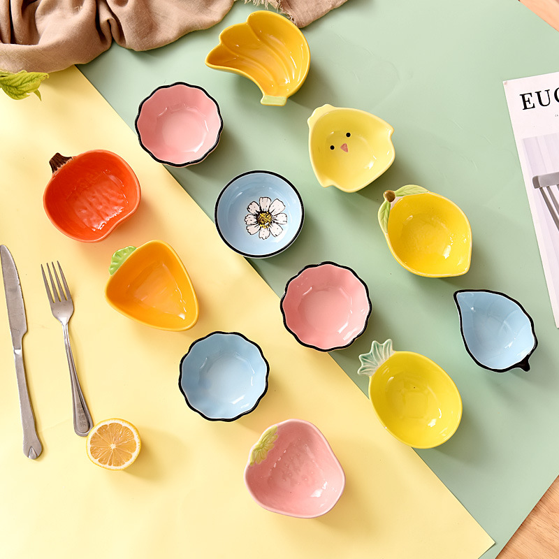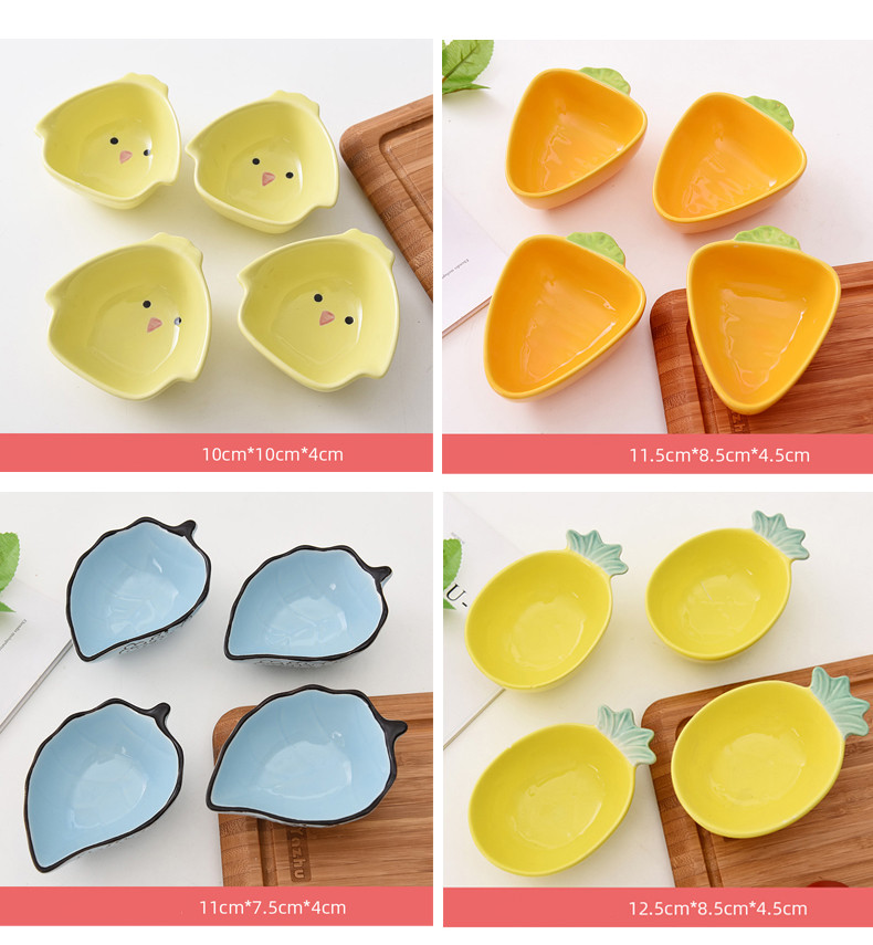 4PC Japanese Ceramic Fruits Flowers Critters Seasoning Dishes