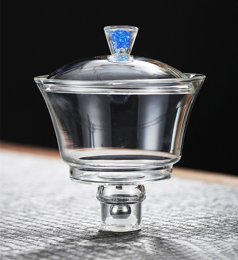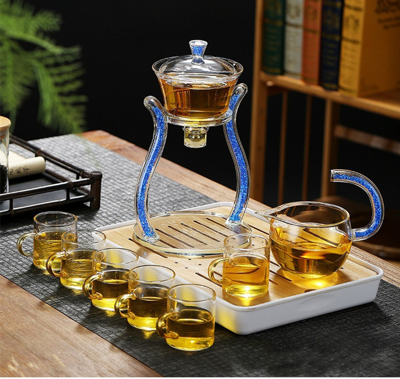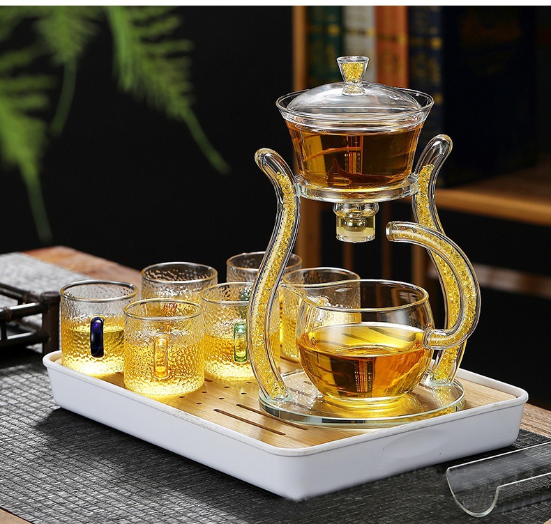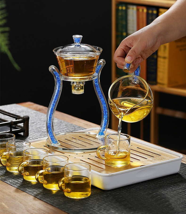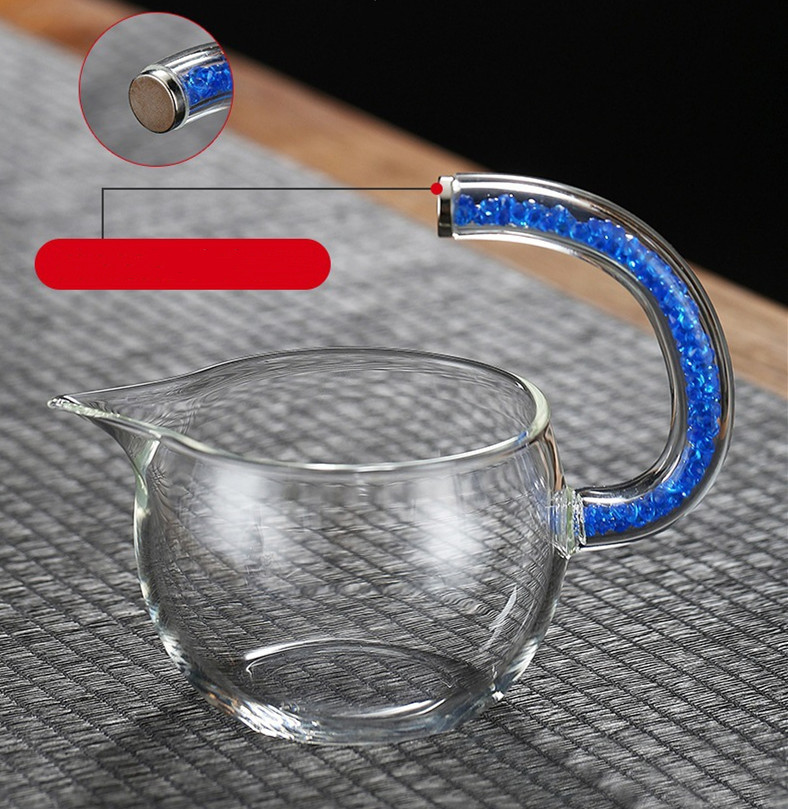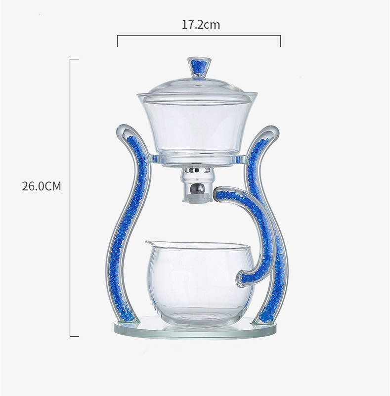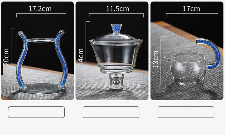 This exotic and modern tea set includes a tea brewer with the tea pot and cups. Made of heat resistant borosilicate, this crystal clear glass is both beautiful and heat resistant.