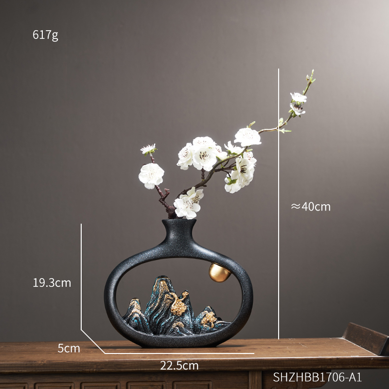 This elegant Chinese Mountain View Vase is a must-have for any home decor. Crafted with intricate details, its tabletop design is perfect for displaying flowers and adding a touch of nature to your living space. Made with expert craftsmanship, it's a beautiful and functional addition to any room.