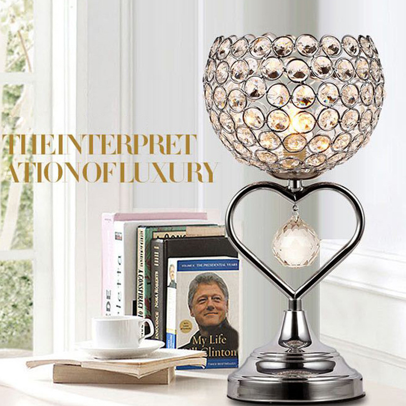 Crystal Cup-Heart USB Table Lamp metal stand with a dangling crystal in the heart.