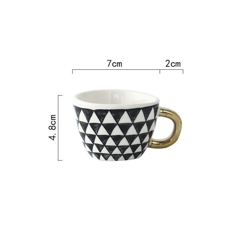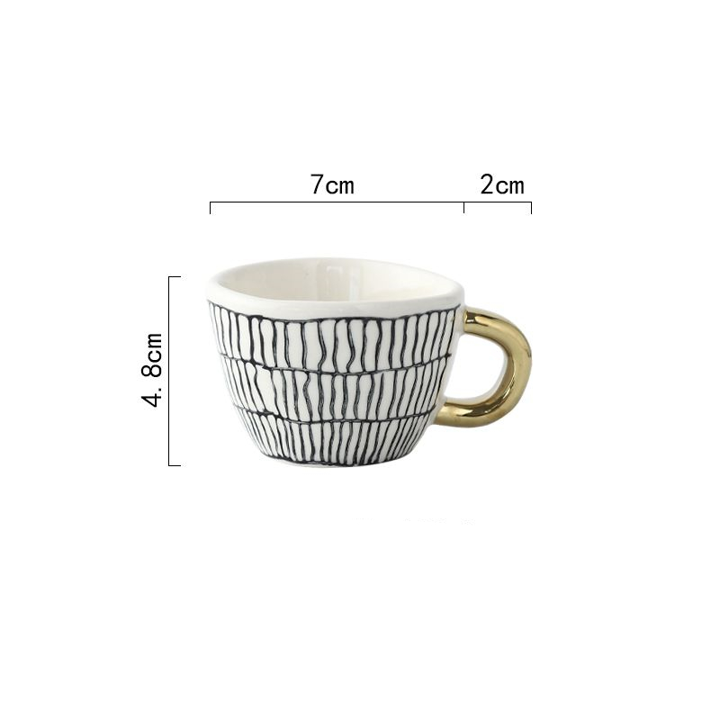 Elevate your coffee experience with our iconic French Black & White Espresso Cups. These chic cups feature a classic black & white design with gold handles, perfect for sipping on espresso, coffee or tea. Available in various patterns, each cup holds 100ml for a perfectly sized drink.