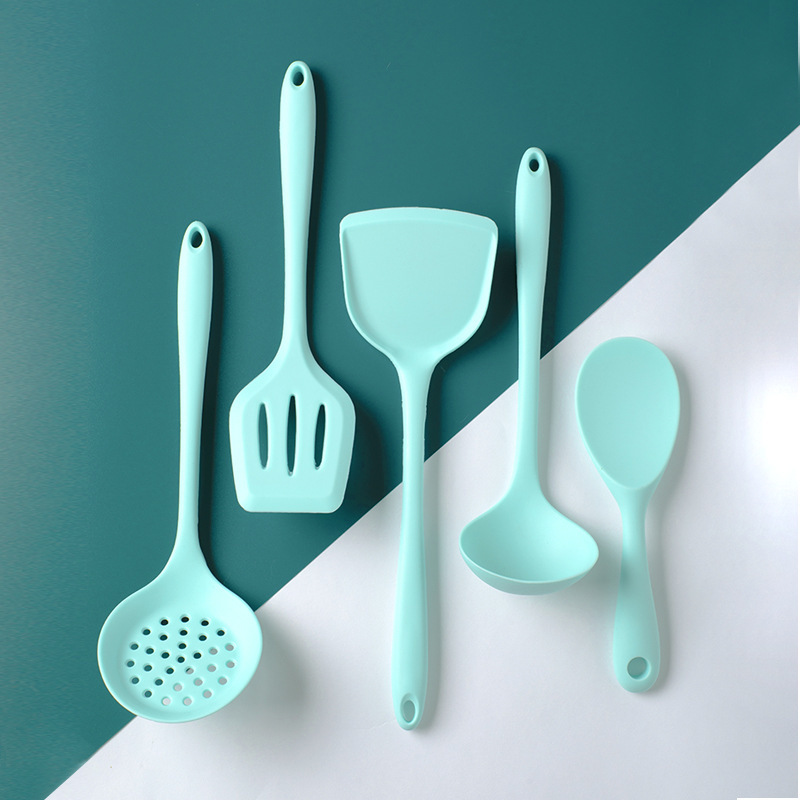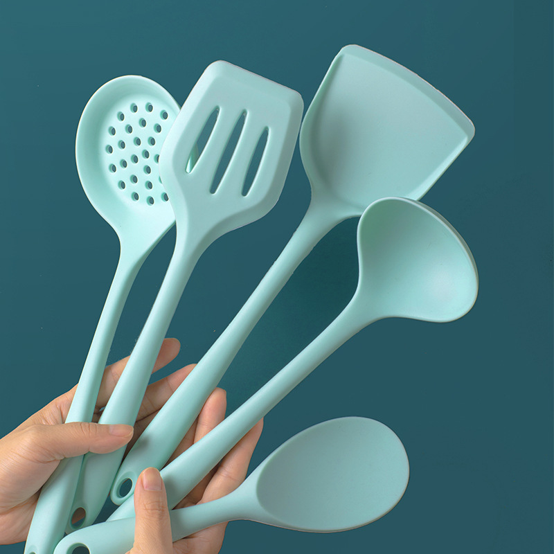 Silicone kitchen utensils in light green or pink. Integrated molding, flexible and does not hurt the pot, Fry, stir-fry, cook, choose your needs at will, to meet daily needs, stylish color matching, simple and generous, silicone material, comfortable handle
