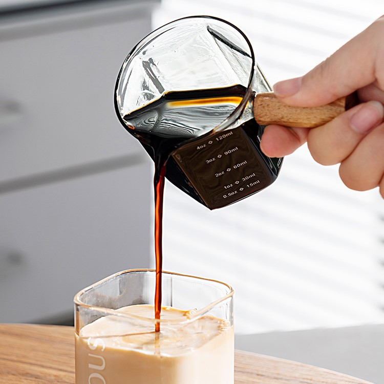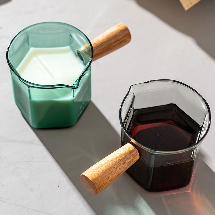 Expertly crafted with high borosilicate glass and finished with elegant beech wood, our Hexagonal Glass Measuring Cup offers both style and function. Available in transparent, lake green, and grey, this measuring cup is the perfect addition to any kitchen, providing precise measurements for your culinary creations.