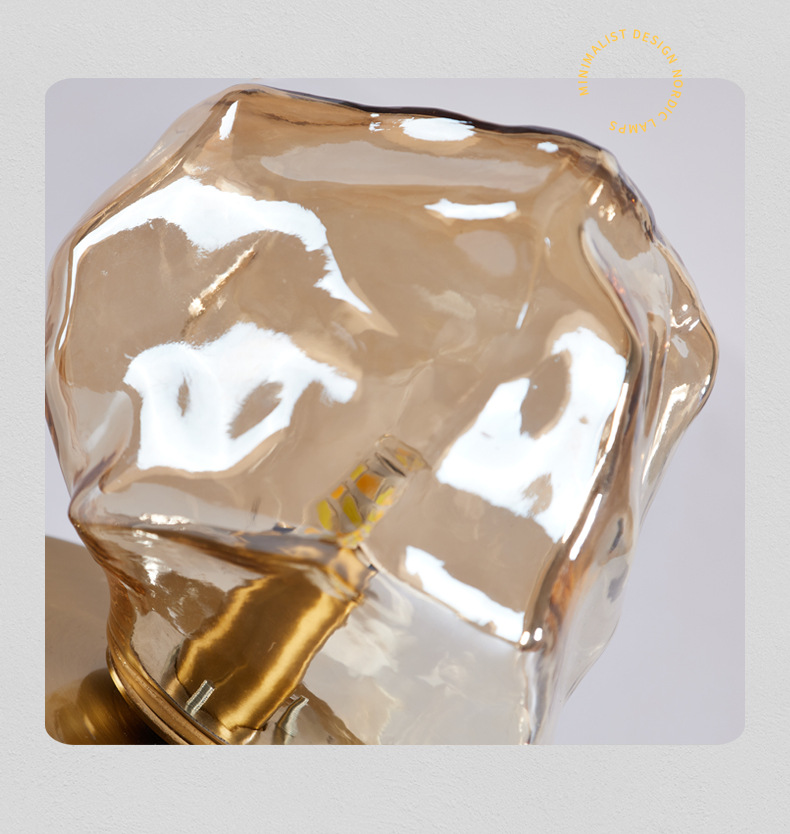 This unique and beautiful glass table lamp looks like a very big chunk of ice. It comes in amber or tricolor Product Introduction: