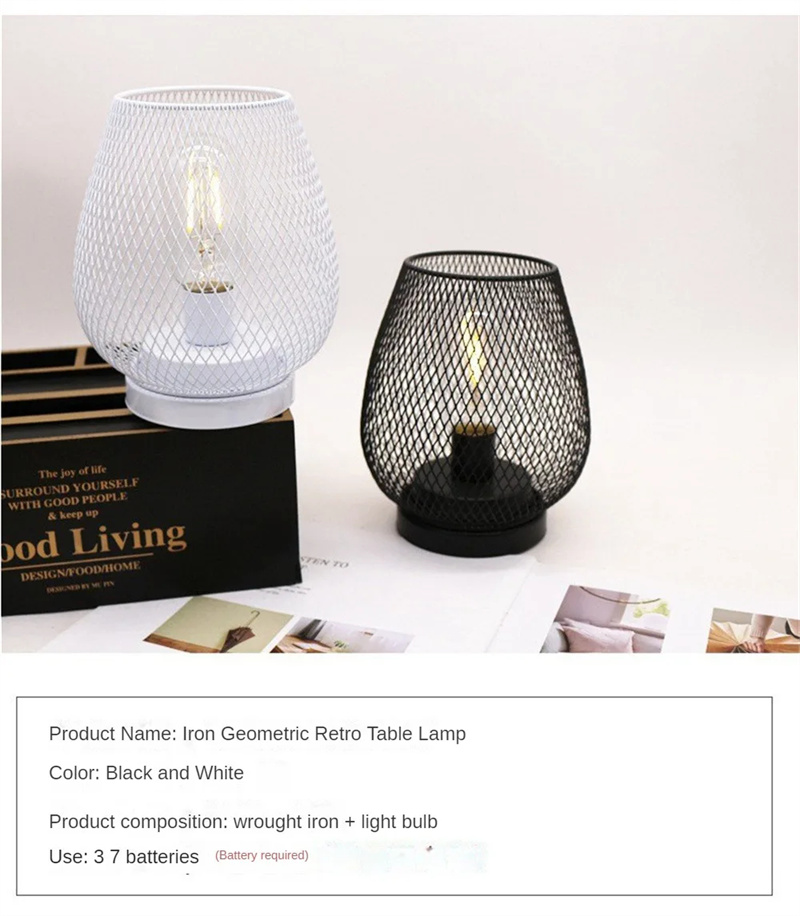Introducing our Retro Iron Art Table Lamp is handcrafted from iron. This lamp combines casual decor, garden and entraining on your deck. Its soft glow and Nordic-style design make it ideal reading, sleeping, or as a decorative piece. With battery operation, you can take it anywhere - indoors outdoors, patio, deck and travel.