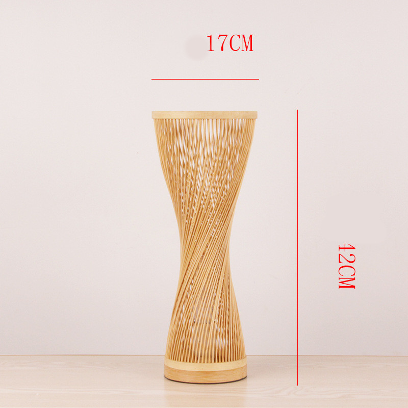This Japanese Bamboo Hourglass Table Lamp features a beautifully crafted bamboo wood lamp holder. With its elegant Japanese style and perfect size, it adds a touch of sophistication to any room. Powered by 220V, it provides a warm and ambient glow. Enhance your space with this unique piece.