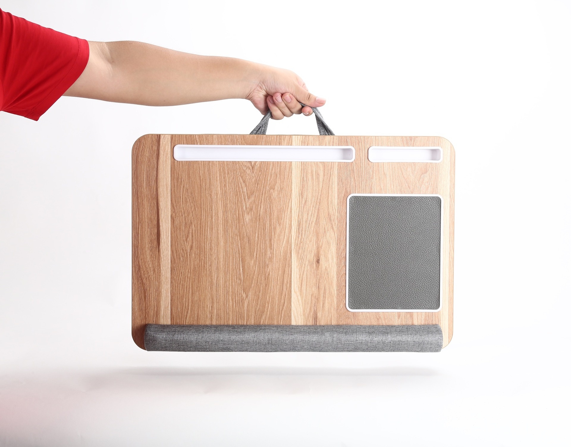 This Laptop Lap Desk offers convenience and comfort with features such as a built-in mouse pad, wrist support, and tablet and phone stands. Its sleek design comes in black, brown, or blonde wood. Work comfortably around the home or carry it with the built-in handle for on-the-go productivity.