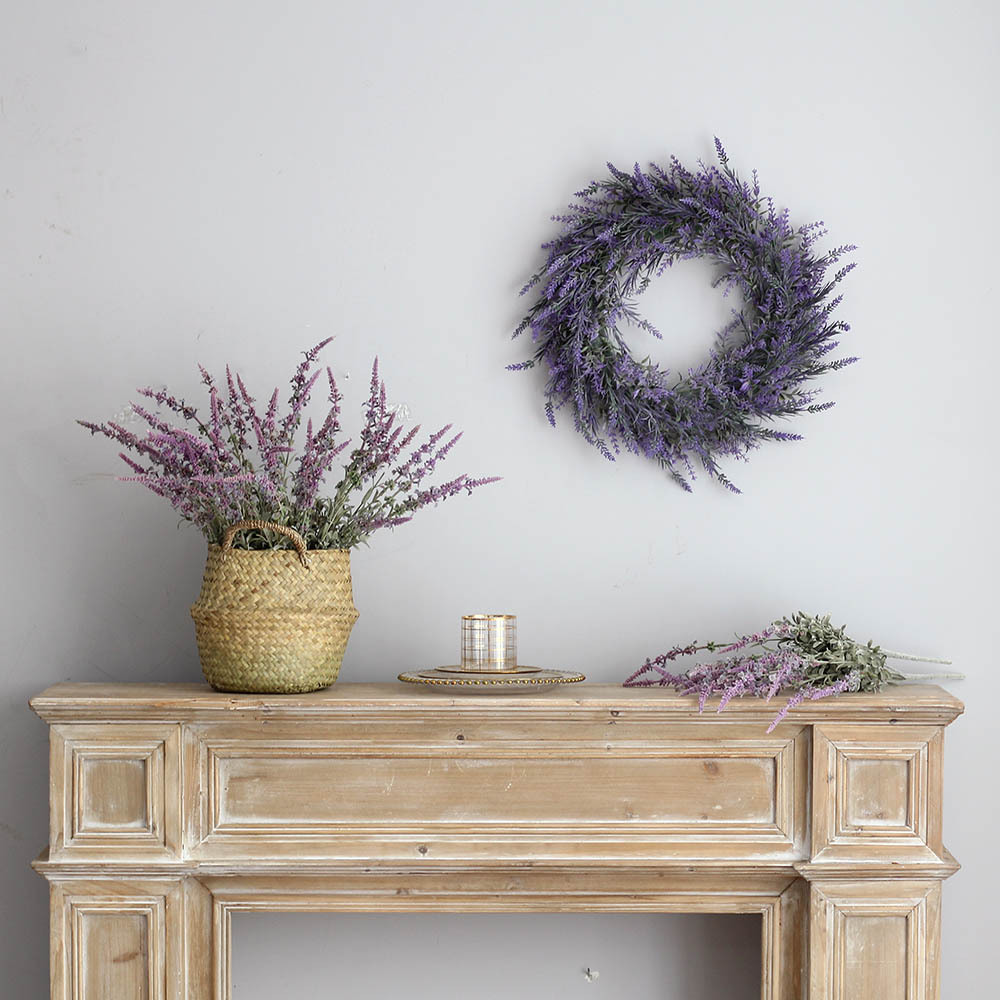 Expertly crafted with durable plastic, this stunning lavender wreath boasts beautiful purple hues and long stems, making it a perfect addition to your home decor. Its weather-proof design ensures it can be enjoyed in all seasons, adding a touch of elegance and natural beauty to any door, window, or hearth.