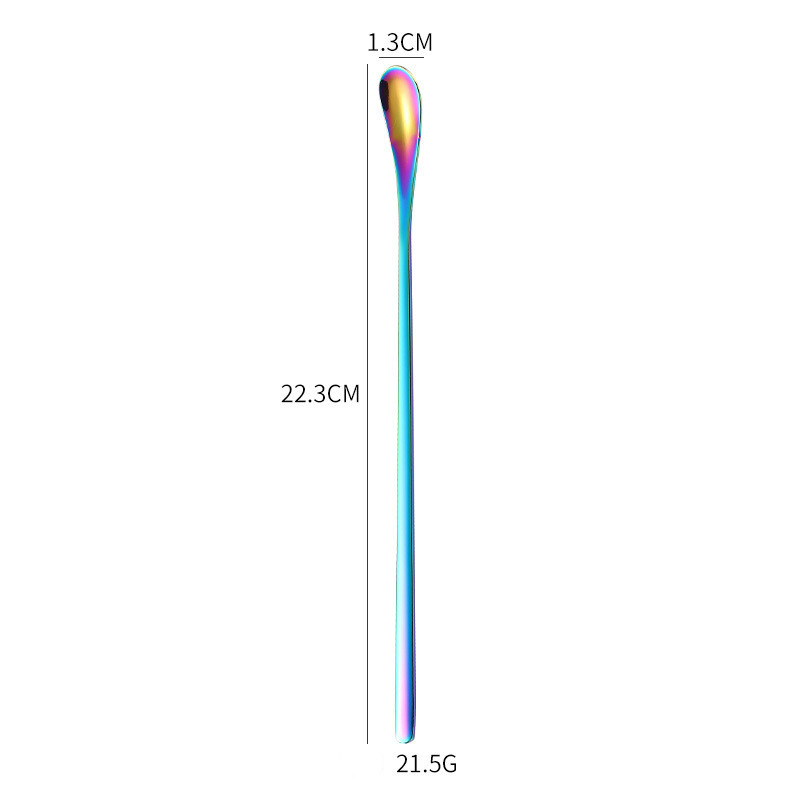 These attractive and colorful anodized stainless steel chocolate spoons serve small amounts of melted chocolate and other dessert sauces over desserts. Just the right size for a single serving sauce.