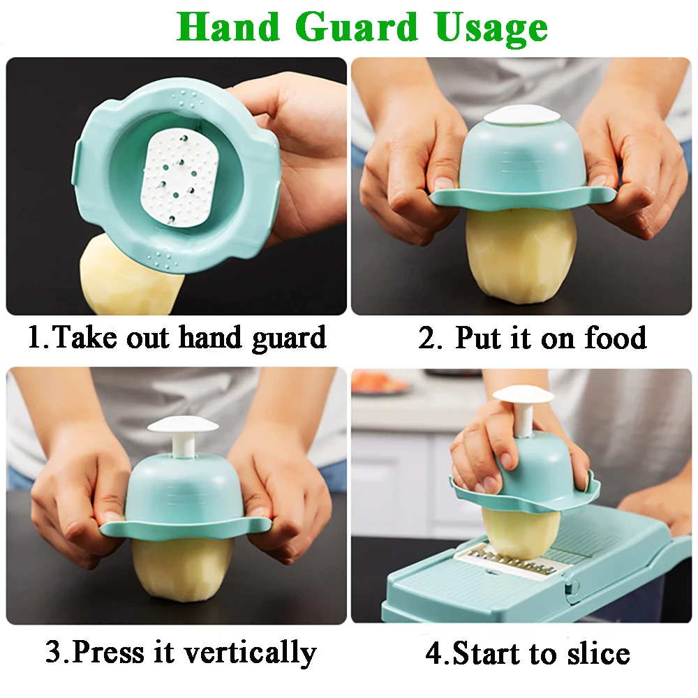 1.Since the vegetable cutter manual food spiral slicer is equipped with sharp blades, you should be extra careful when handling the vegetable cutter chopper kitchen accessories and do not allow children to leave without proper supervision.