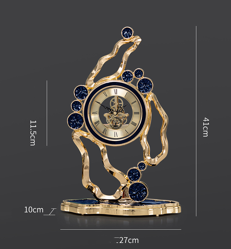 Mechanical Gear Clock-Gold with Enamel Ornamentation