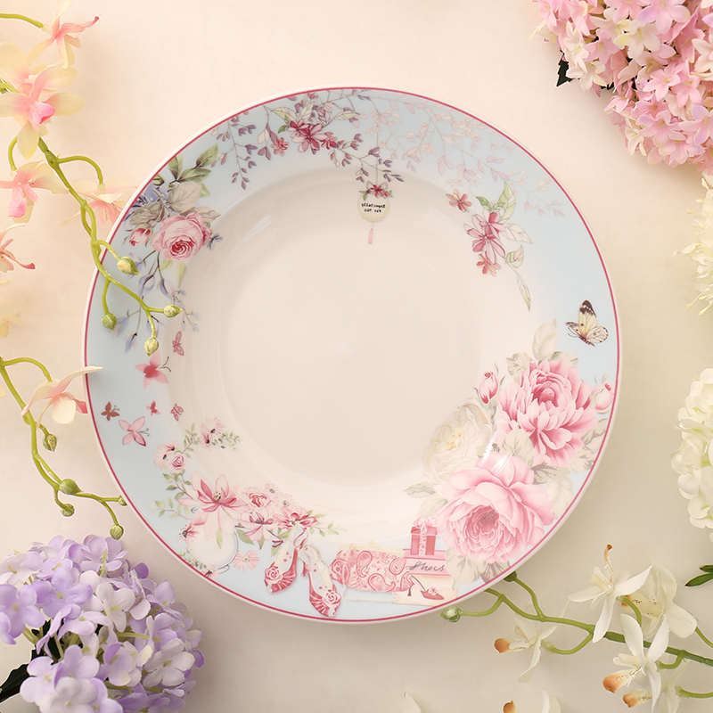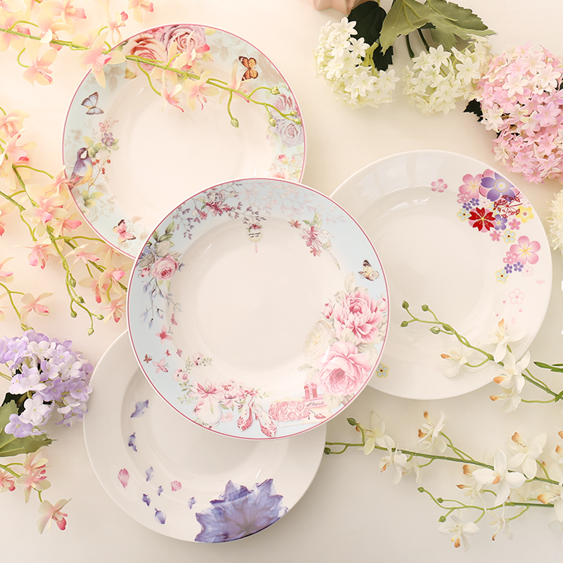Japanese rural, botanical painted bone china soup plates. Can also be used for cake plates, brownie plates, fudge, cookies, and dessert. Great for afternoon tea or guests .