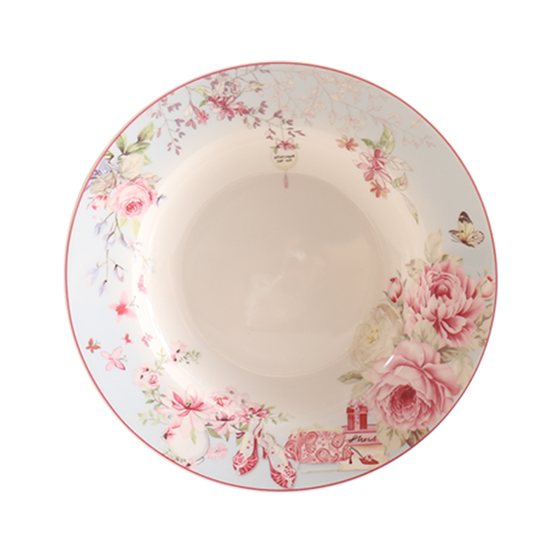 8" Japanese Garden of Pink Flowers White Bone China Soup Bowl