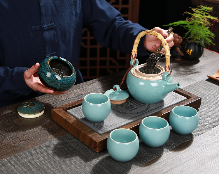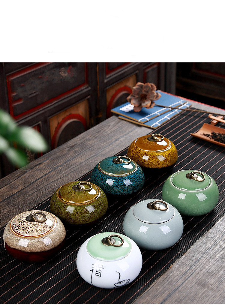 Ceramic Loose Leaf Tea Storage Pot Sealed Lid & Ring Pull