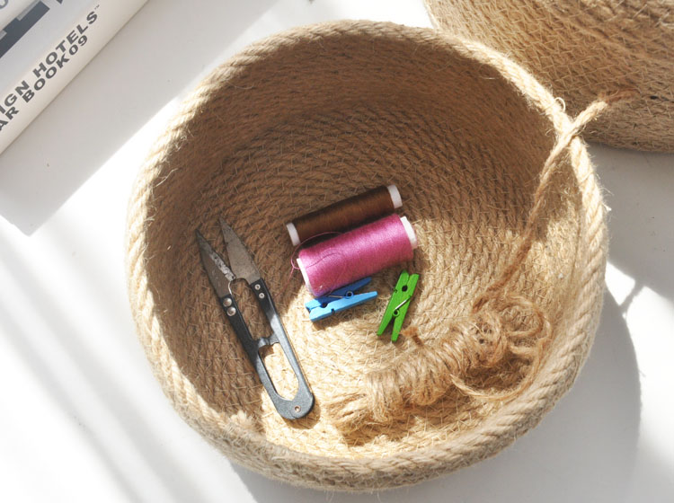 This natural rope storage basket is an attractive way to store table linens, bath or bed linens or sundry items. The lid keeps out dust. Comes in three sizes: small, medium, and large. I like the small size for sewing implements, scarves and handkerchiefs. I use the large size to store my winter scarves and gloves in the entryway closet. I also use it store table linens.
