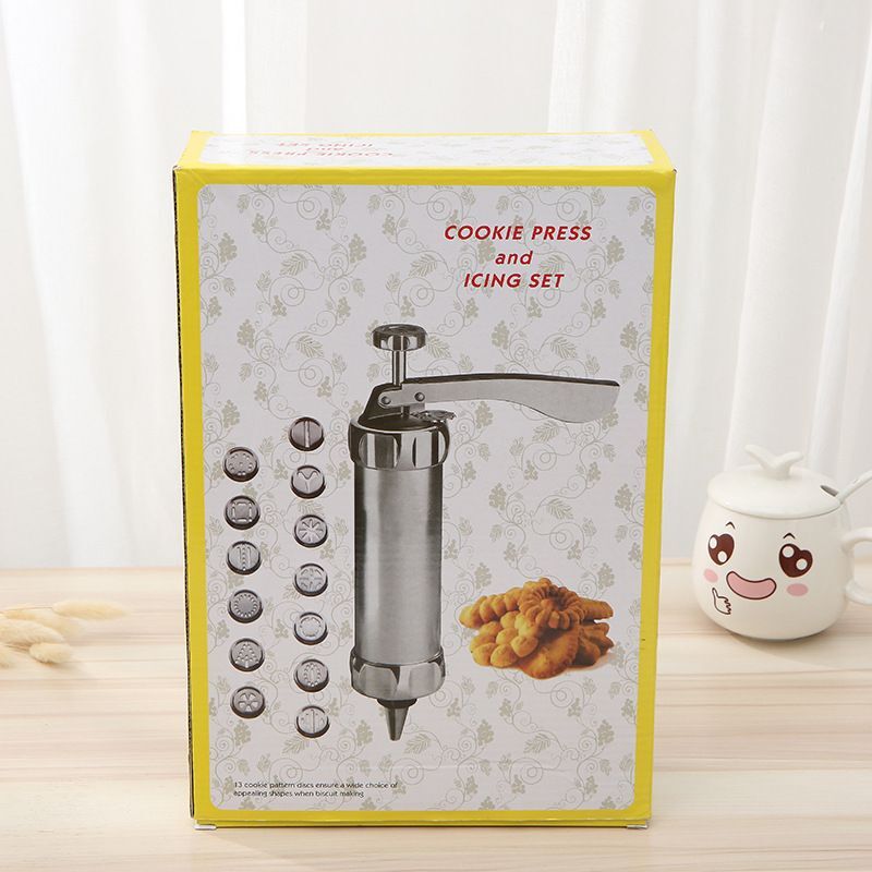 Includes: 1 Stainless Steel Cookie Piping Gun, 10 Aluminum Disc Set or 20 Aluminum Disc Set, and 4 Pastry Tip Set