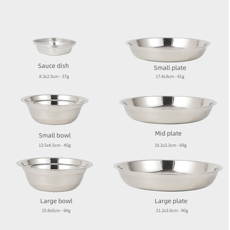Stainless Steel Bowls & Plates: Durable stainless steel dinnerware for camping, events, barbecue, kitchenware, prep bowls