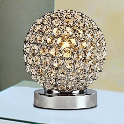 This Cut Crystal Globe Table Lamp adds elegance to any room. The round globe design is complemented by a stemless structure and a gold metal base. Disc-shaped crystals in gold fittings provide a sophisticated touch. Illuminate your space with style.