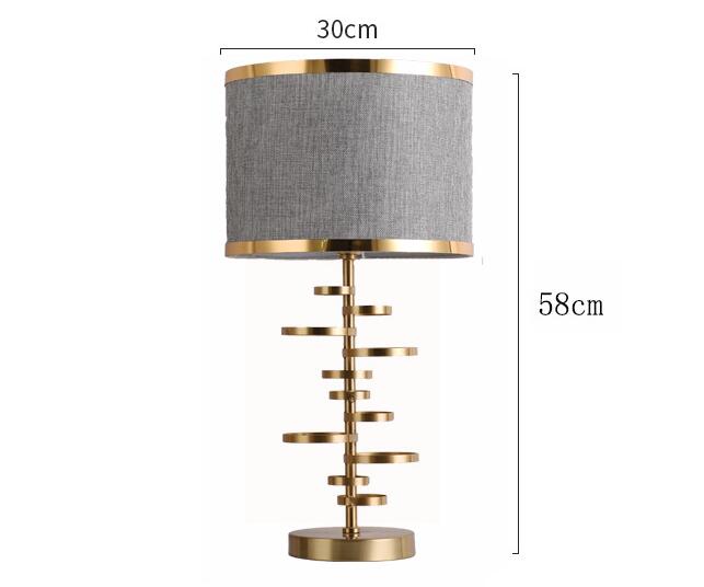 This Transitional to Modern Table Lamp seamlessly blends traditional and modern styles. The iron lamp is electroplated with imitation copper and features sculpted ringlets, creating a stunning visual. Paired with a dark grey fabric traditional lamp shade, this lamp bridges the gap from traditional to modern beautifully making it adaptable to either style. This is a luxury, high end piece that will elevate any decor.