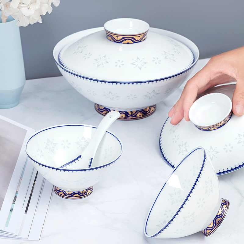 Color: full of happiness big soup bowl and single combination, full of happiness 5-inch hat bowl single, full of happiness small spoon single,