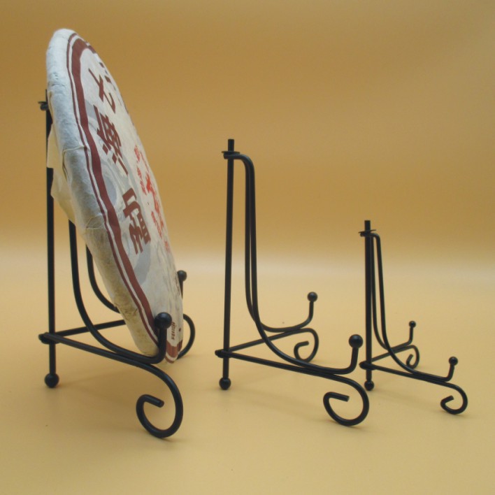 The Wrought Iron Plate Stand with Flourishes adds a touch of elegance to any room with its delicately curled ends. Crafted from durable wrought iron, this stand will securely display your favorite decorative plates, making them a stylish focal point in your home.