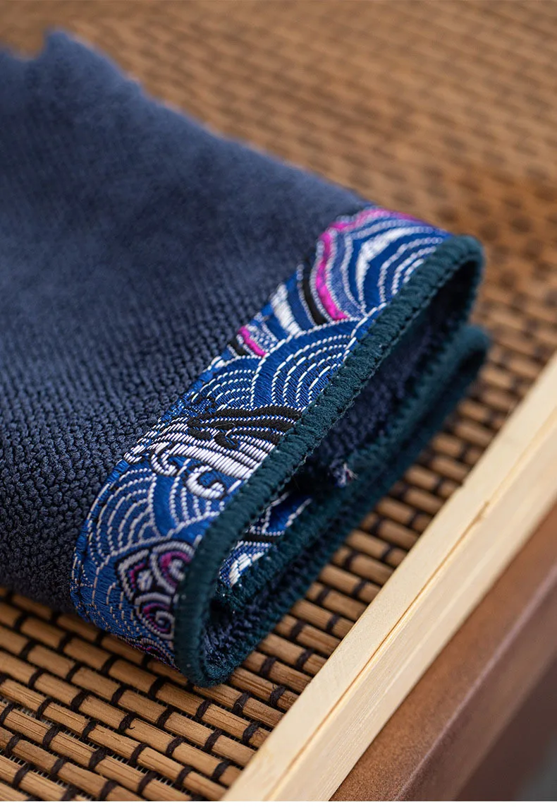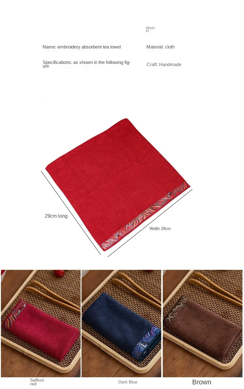 Color: Embroidered Yunjin Tea Towel-Navy Blue, Embroidered Yunjin Tea Towel-Brown, Embroidered Yunjin Tea Towel-Navy Red